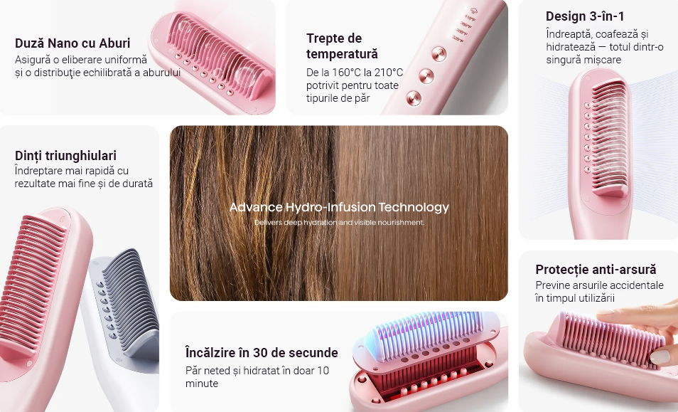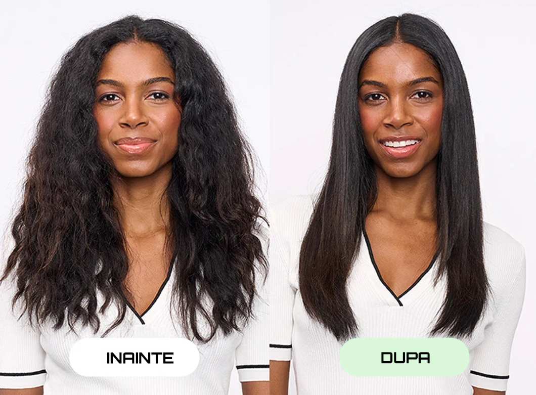 Îndreaptă, coafează și hidratează — totul dintr-o singură mișcare ușoară.